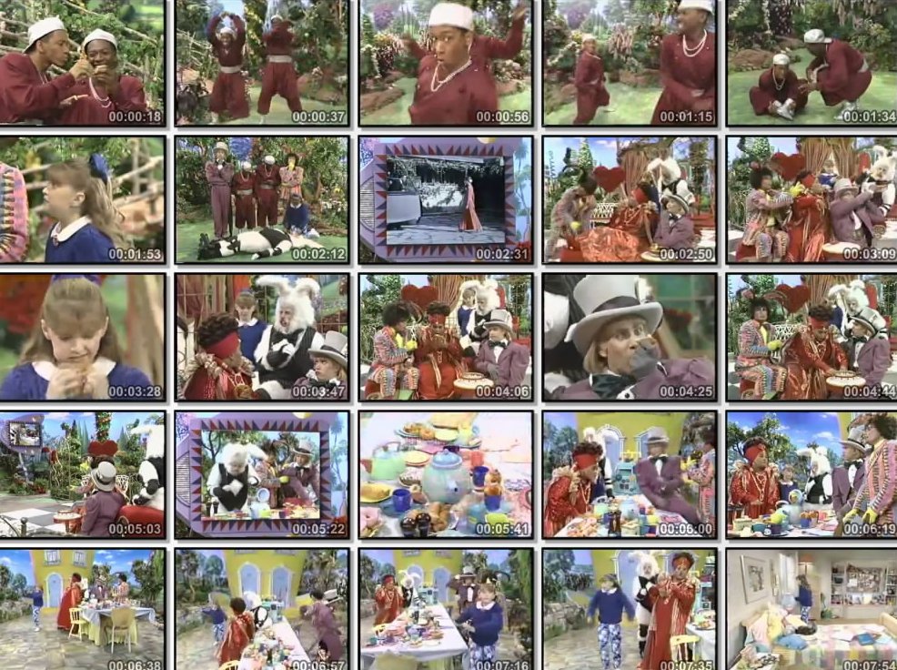 The White Rabbit has dropped the Queen's diamond ring into a pretzel machine. Alice and the others have to start eating a lot of pretzels, fast, before the Queen finds out what happened. The Hare and the Hatter do an extremely well coordinated dance. Their machine, it turns out, can't be turned off once it starts and it makes a huge stack of pretzels.