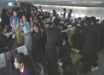 Shinkai's got a charter flight with what looks like a group of schoolgirls.