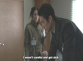 Ogawa had asked her coworker to help keep her away from Shinkai which he at first does, then he seems to realize how much she really cares for him and the next time Shinkai comes looking for her he tells him where she is, which is at the airport clinic getting her hand cared for.
