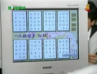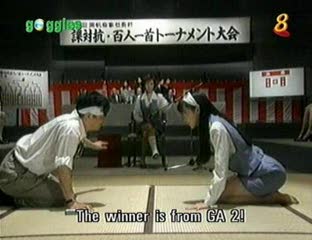 One person sits on each side of a mat. On the mat are numerous cards with poems (I assume) on them. The narrator reads a poem, and the person has to pick the card that either is the poem or has something to do with the poem, or something like that.