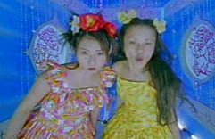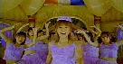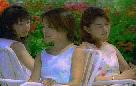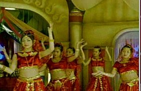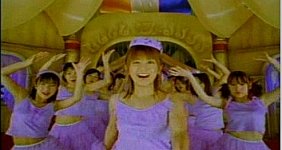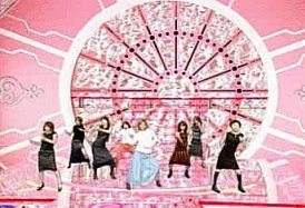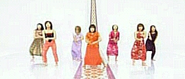 10. Happy Summer Wedding: This one takes strange to new levels. It opens with the girls in Indian belly-dancing outfits (sort of a continuance from the previous song but at a more sedate pace) (actually, not really sedate, but almost anything would be sedate by comparison to the previous song), but also ends up showing the girls in hick-type outfits and some type of ceremonial outfits. The tune itself is actually quite funny, the music basically hilarious in parts. The best way to describe it is that it's a fun song.