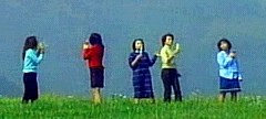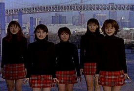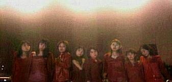 5. Memory seishun no hikari ("Memory, the Light of Youth") : This one just doesn't seem to work. First off, it reminds me of many X-Files episode; everything is so dark it seems like someone forgot to pay the electric bill. The singing is just not up to par; at times it actually is so dissonant it grates on ones nerves. The rapping portion (in English by male rappers) doesn't seem to add to the video, either. It's just sort of there, not really related to everything else. This is the rare Morning Musume song that I just don't like at all.