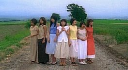 7. Furusato ("Hometown") . This is a very sedate song with a strong air of sadness about it. There are many beautiful scenery sights along with various baby pictures of some of the Morning Musume members. It's a nice song, but there is one annoying thing, and that's the over-repetition of a sound which reminds me of an R2-D2 beeping noise; it is dissonant with the general tone of the song and gets to be annoying very quickly, distracting from the overall impact of the video.