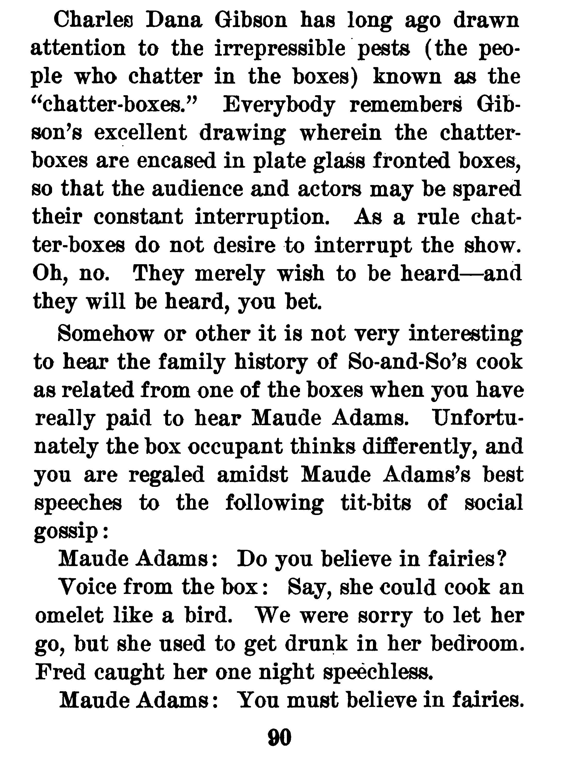The author writes about a problem he had with someone talking while Maude Adams was acting.