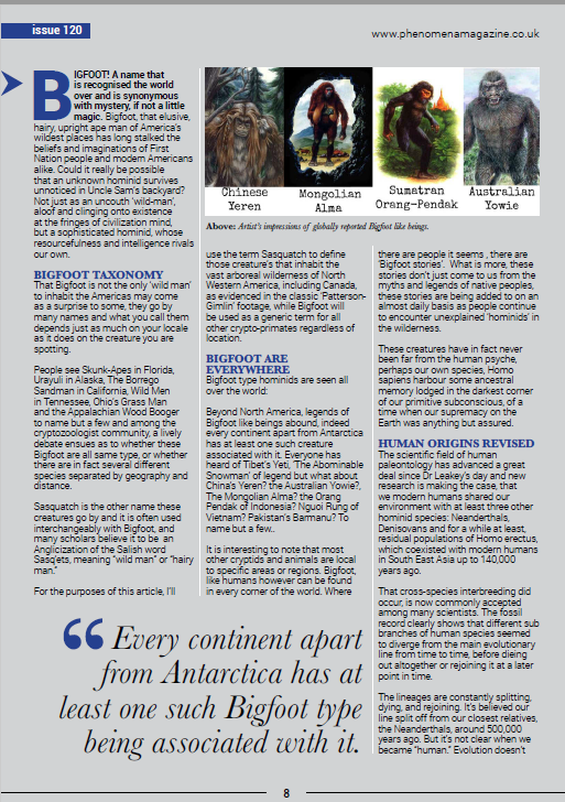 The article does address the possibility that there are different species of Bigfoot. It goes into the names given to these although the strangest one of all, to me at least, is the Appalachian Wood Booger.