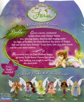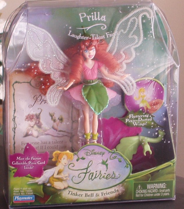 Prilla is the only fairy that has her particular talent. All the other fairies are in groups, but Prilla is alone, and that makes her a little insecure. So when other fairies ask her to help in something that they are doing, she always says yes, even though she may not have any ability at all in the particular talent the other fairies are using.
