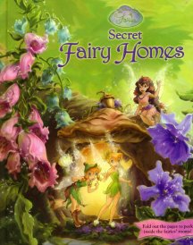 This is an unusual and very beautiful book. Each two-page section folds out to a four-page inner fold that contains a artwork of the fairy's home and the objects in it. The fairies covered are Lily, Tinker Bell, Rani, Fira and Beck.