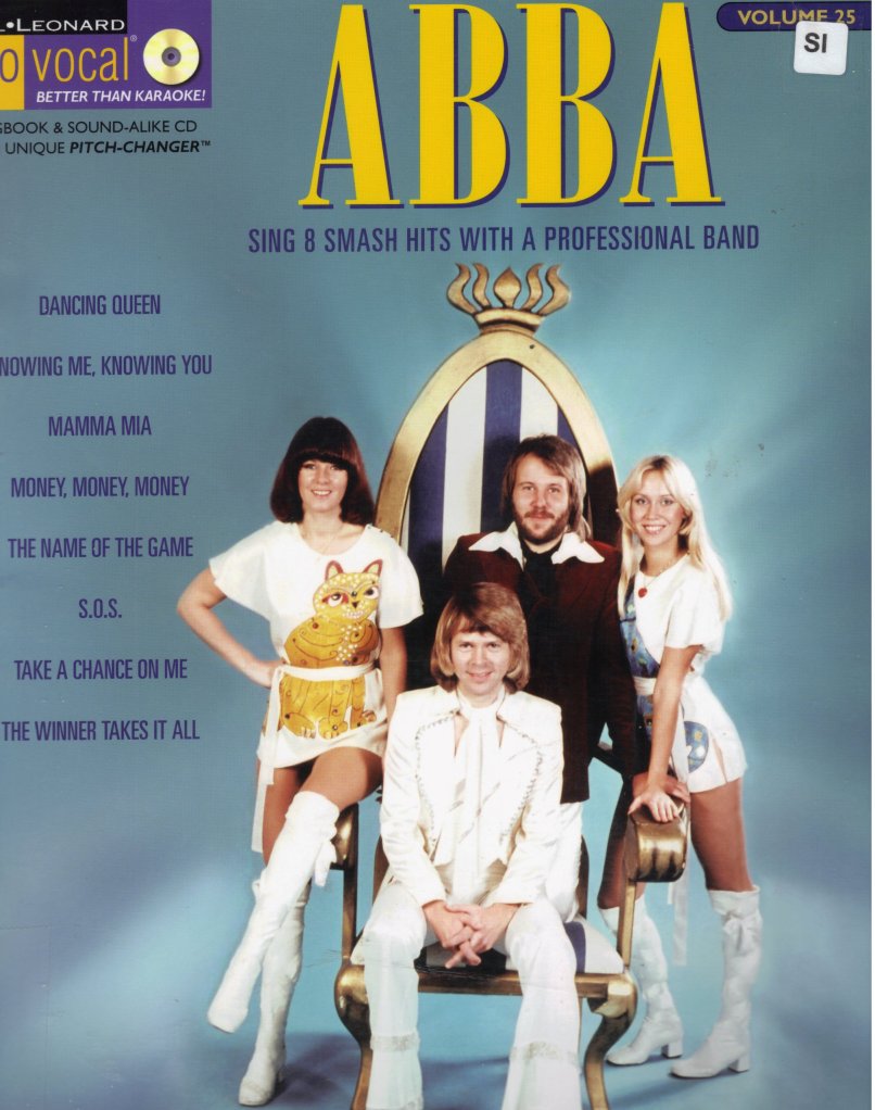 This is a book and CD combo. The book contains the music and lyrics to Dancing Queen, Knowing Me, Knowing You, Mamma Mia, Honey, Honey, Honey, the Name of the Game, S.O.S., Take a Chance on Me, and The Winner Takes It All.