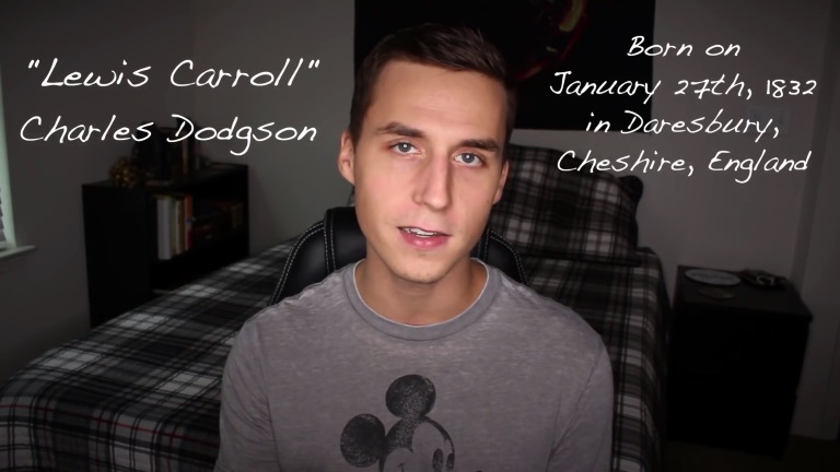 He then starts to talk about Lewis Carroll. He talks about some physical problems Charles Dodgson had including a limp due to a knee injury and stuttering.