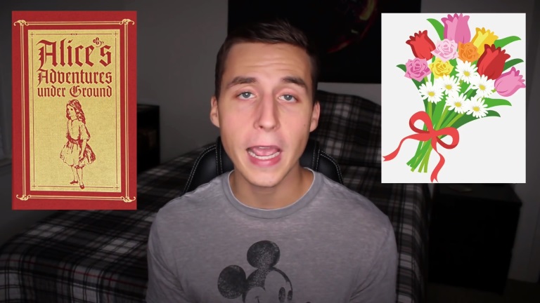 He goes on to talk about the nude photos Dodgson took and also how he spent a week along at a resort with a fifteen-year-old actress. He adds, though, that the girl later wrote a autobiography and said nothing bad about Dodgson and that in Victorian times it was normal to send Christmas cards with nude photos of their children on them.
