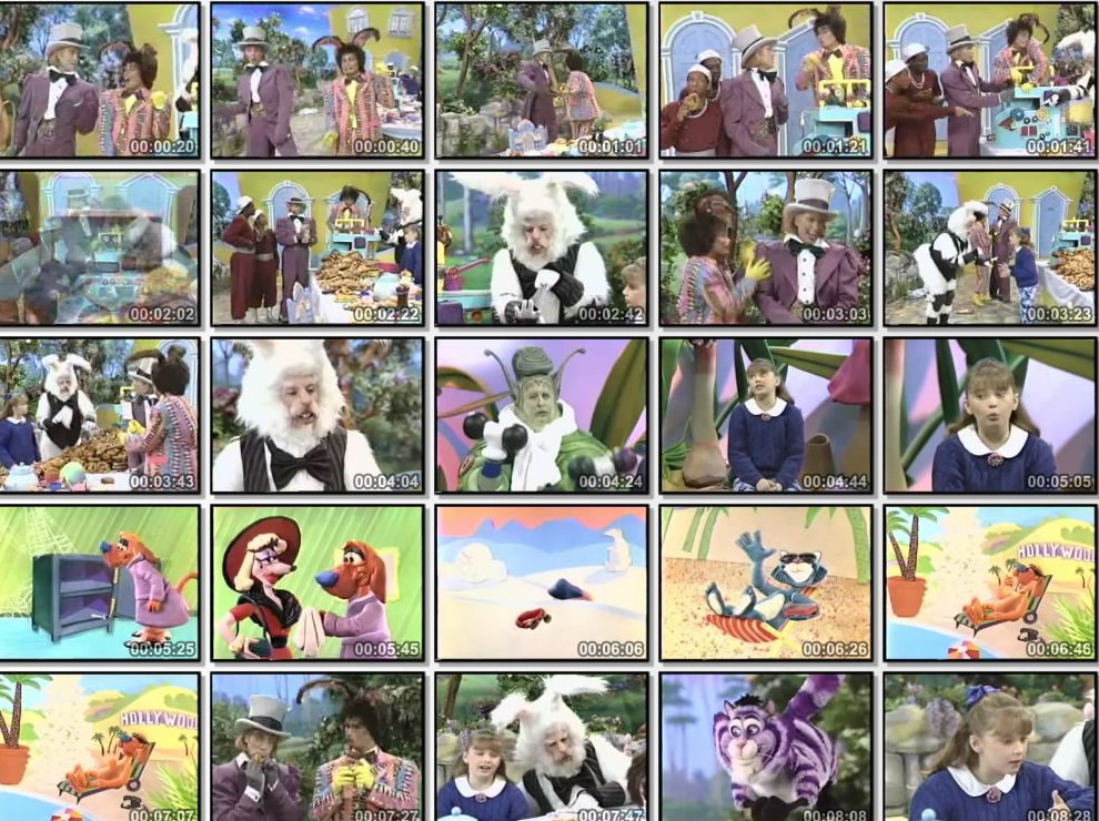 The White Rabbit has dropped the Queen's diamond ring into a pretzel machine. Alice and the others have to start eating a lot of pretzels, fast, before the Queen finds out what happened. The Hare and the Hatter do an extremely well coordinated dance. Their machine, it turns out, can't be turned off once it starts and it makes a huge stack of pretzels.
