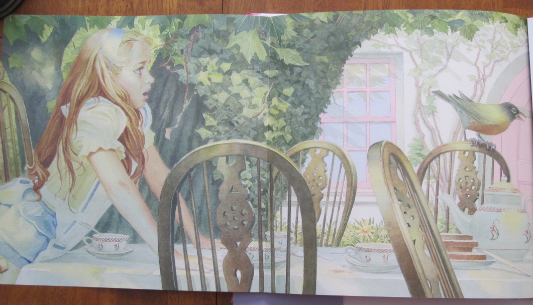 This is a really good version. The artist does an excellent job with his drawings. Further, three of them are fold-out drawings, one of Alice falling down the rabbit hole, one of the tea party and the third is and the third is when Alice meets the Queen of Hearts. All three are quite large fold-outs.