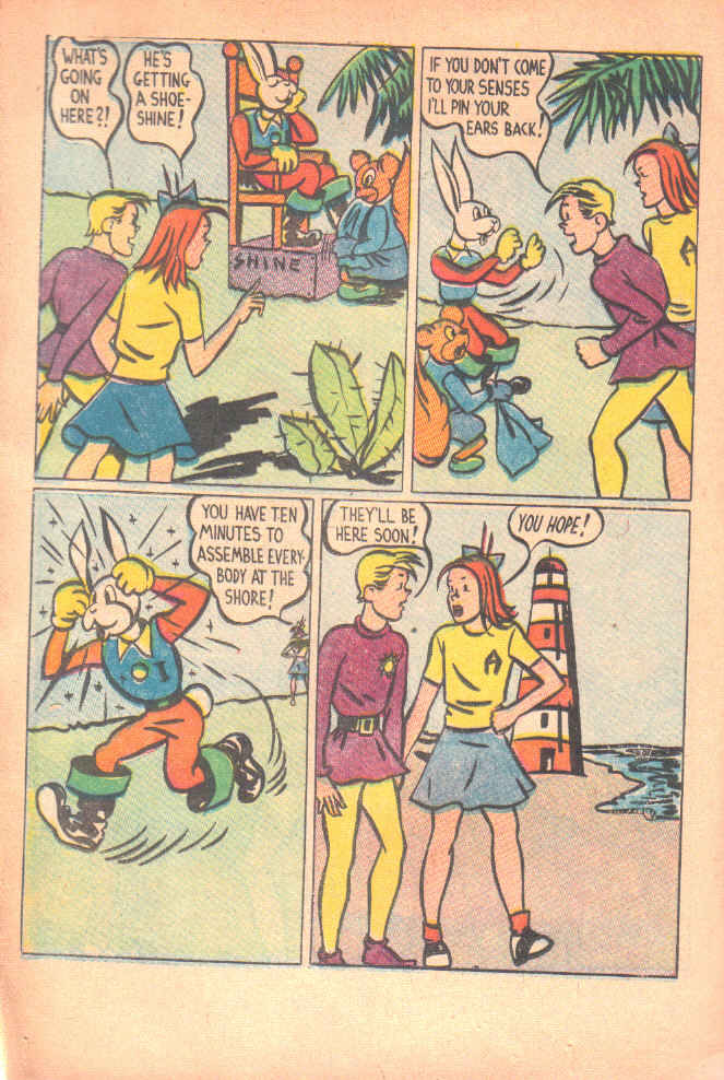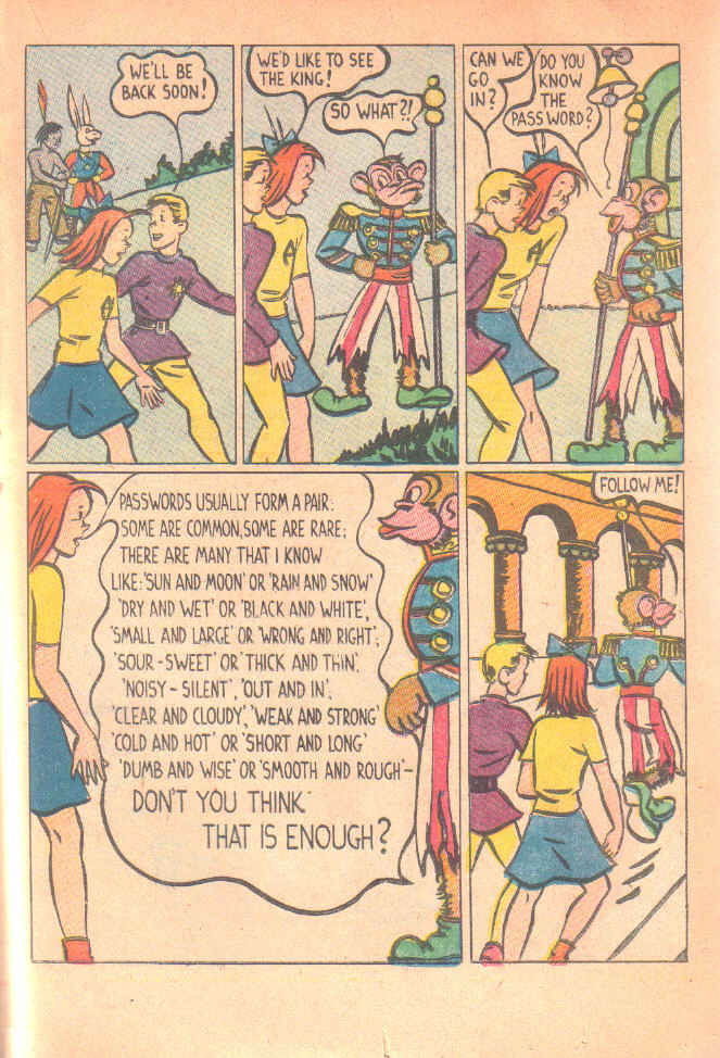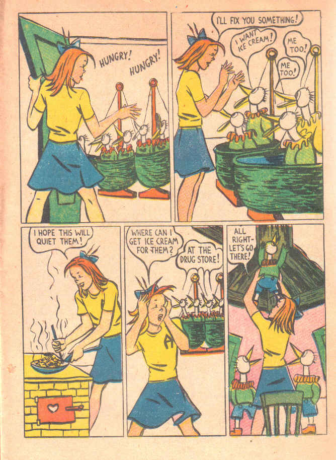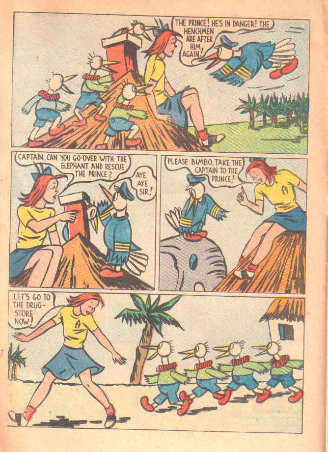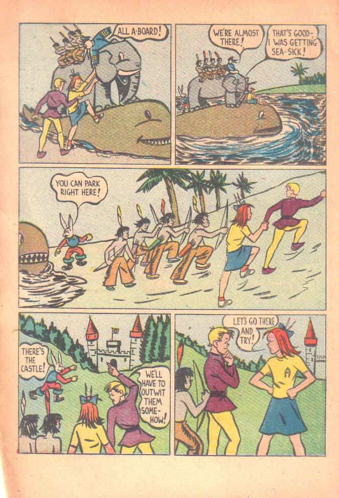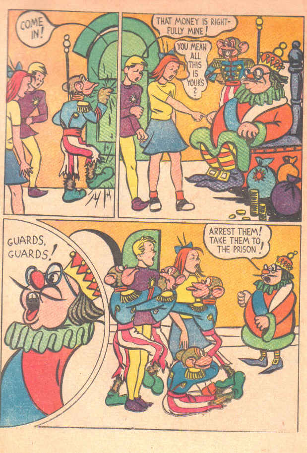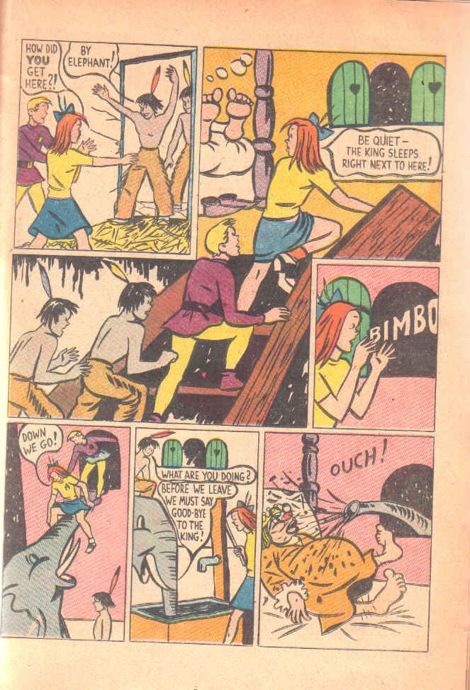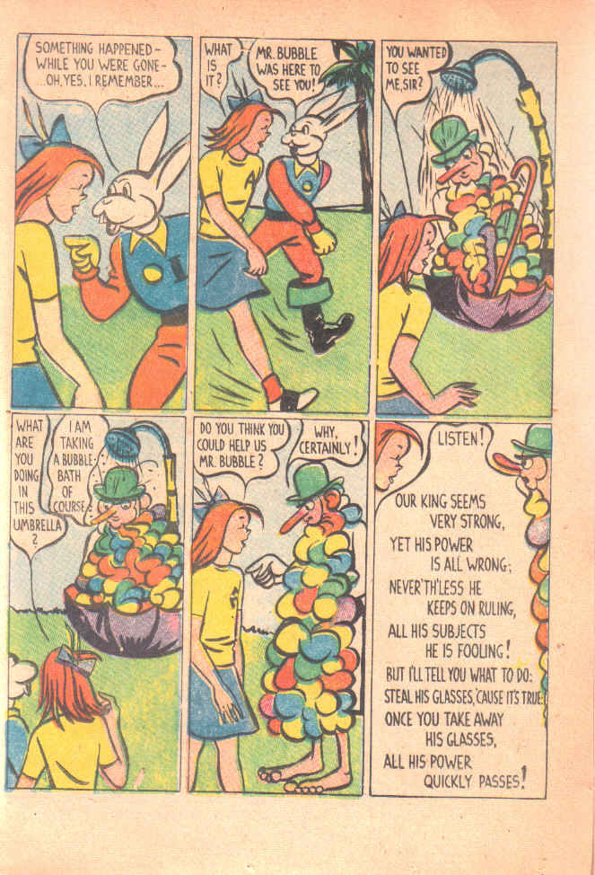 She goes for help for the prince but runs into trouble on another island where she ends up inside a house. Alice meets a number of characters which, while not from the traditional stories, do fit the general tone of those stories. She helps the prince overcome the king in a series of somewhat comical adventures.