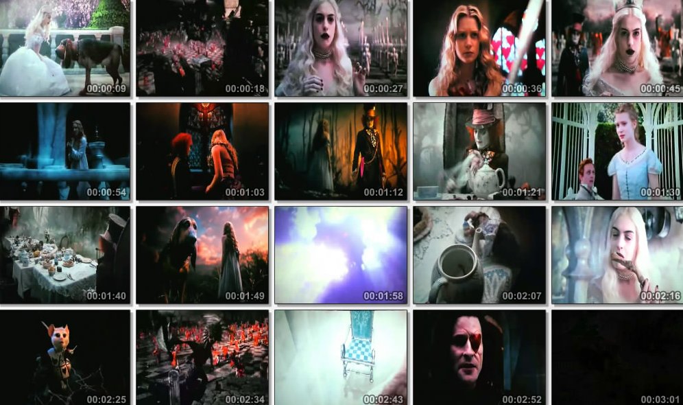 Scenes from the Time Burton version of Alice in Wonderland along with a musical background.
