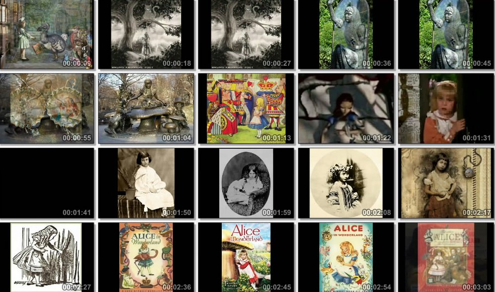 This is a very good fan-made video. It has loads of pictures of Alice in various forms; from movies, from books, from video games and even from various keepsake memorabilia like buttons. Very well done.