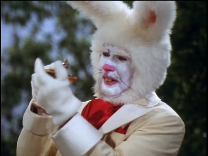 There's also a number of songs that are done, all from Steven Allen. The outfits the characters wear are fairly well done. There are some variations from the actual story, but not horrible ones. For example, when Alice falls down the rabbit hole she ends up at the bottom and then follows a long horizontal tunnel leading to the room with doors.