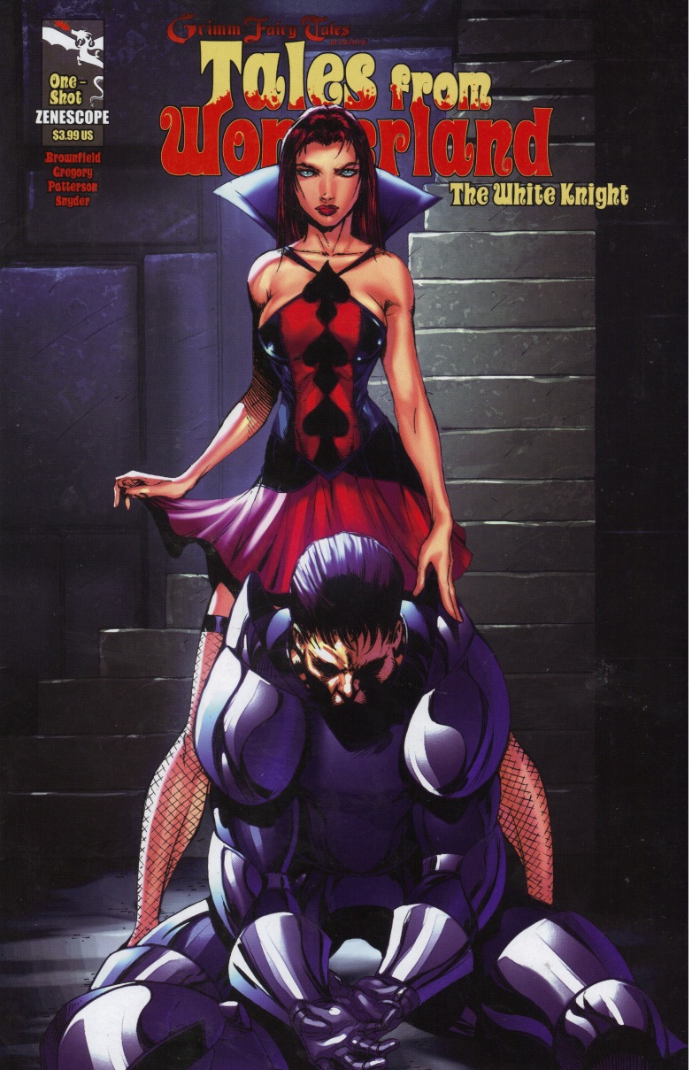 The story starts with looking at the legend of King Arthur, and then moves on to Merlin and a boy he is training. The boy has to escape and does so into Wonderland where he puts on the armor of a white knight. He is an excellent fighter but, as did Merlin, succumbs to the charms of the stereotype evil woman who wishes to corrupt him into her service.