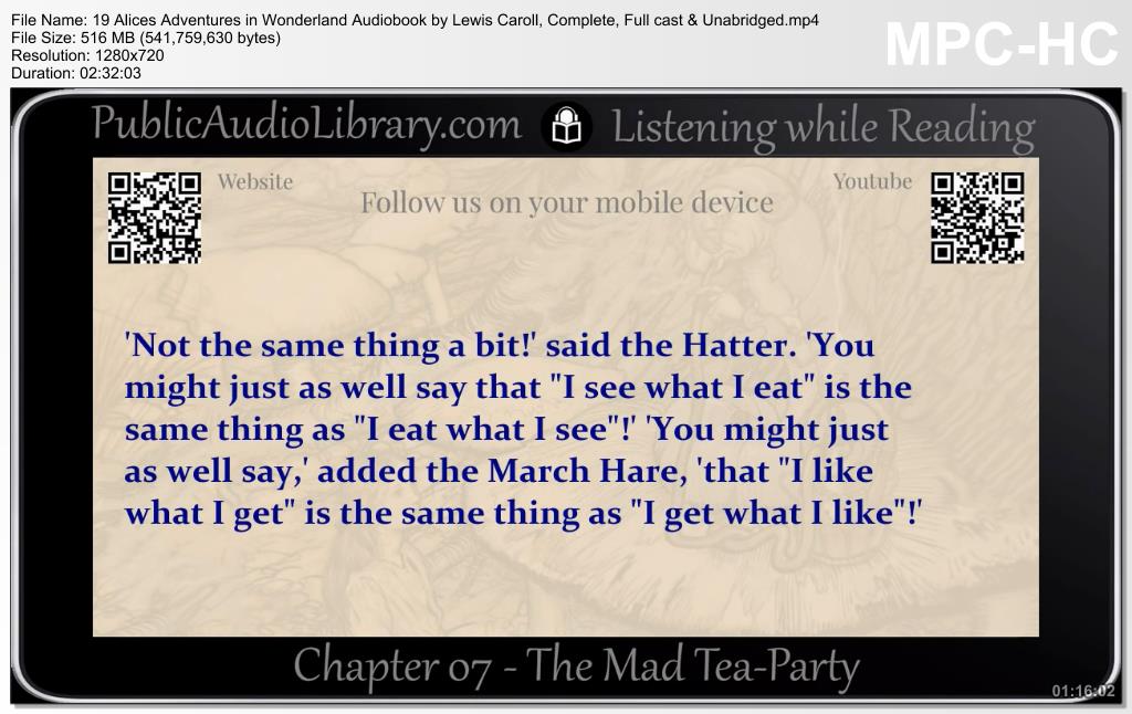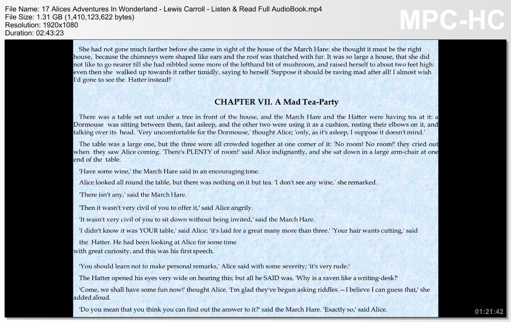 1:20:55. Alice's Adventures Under Ground. Male narrator.