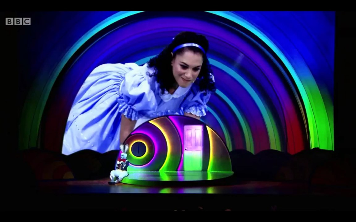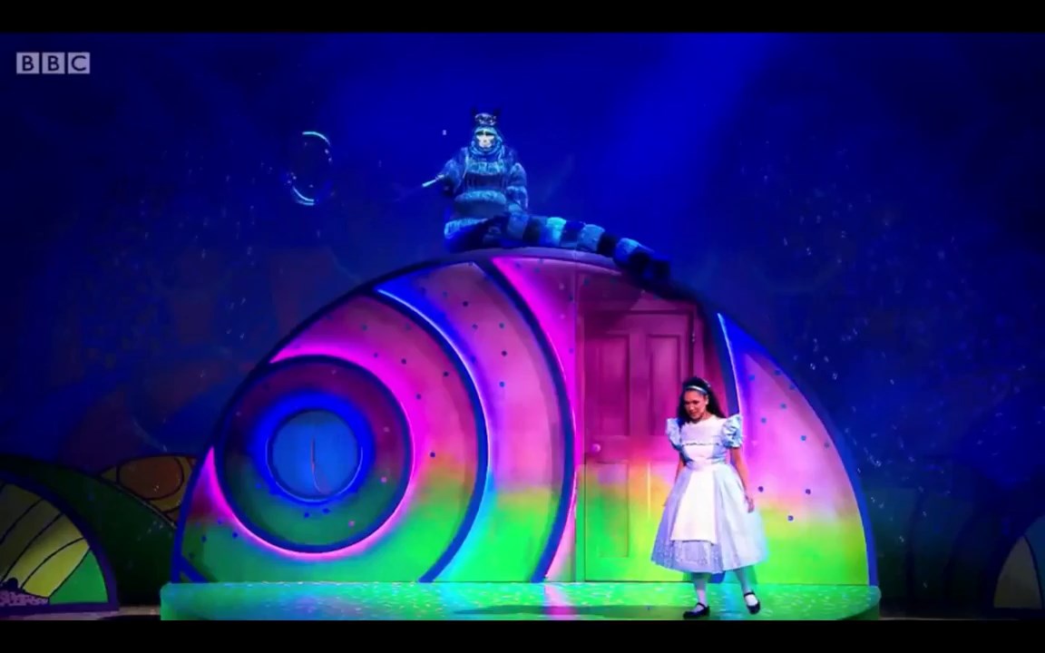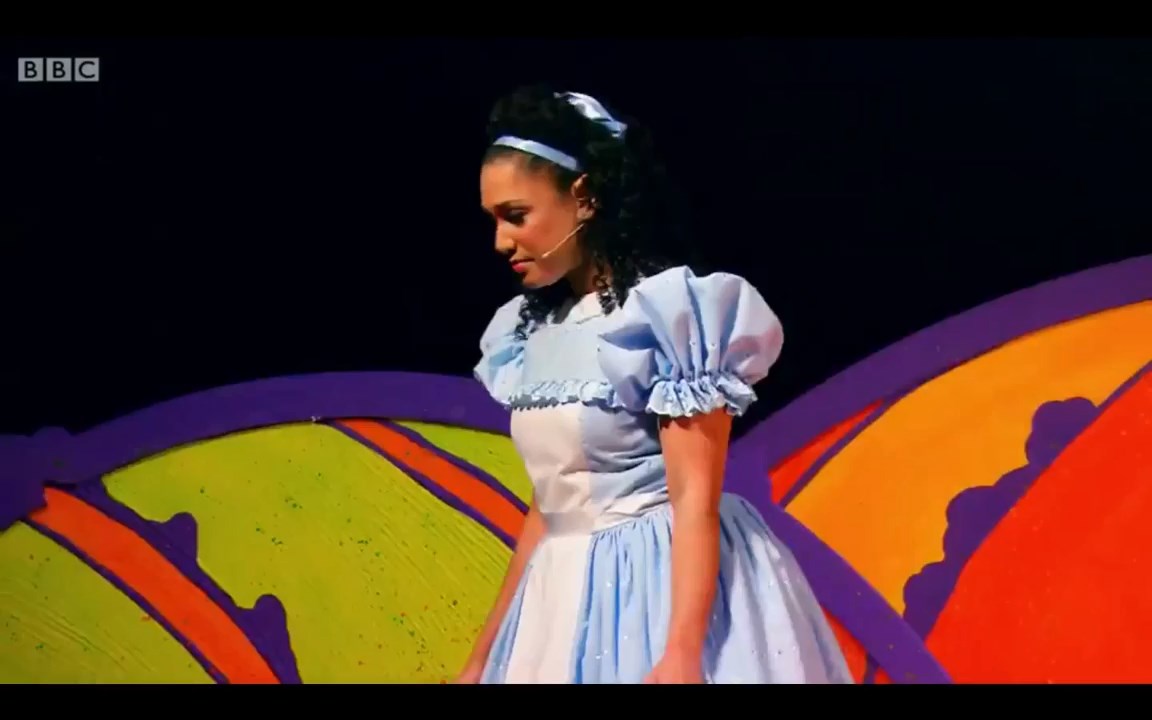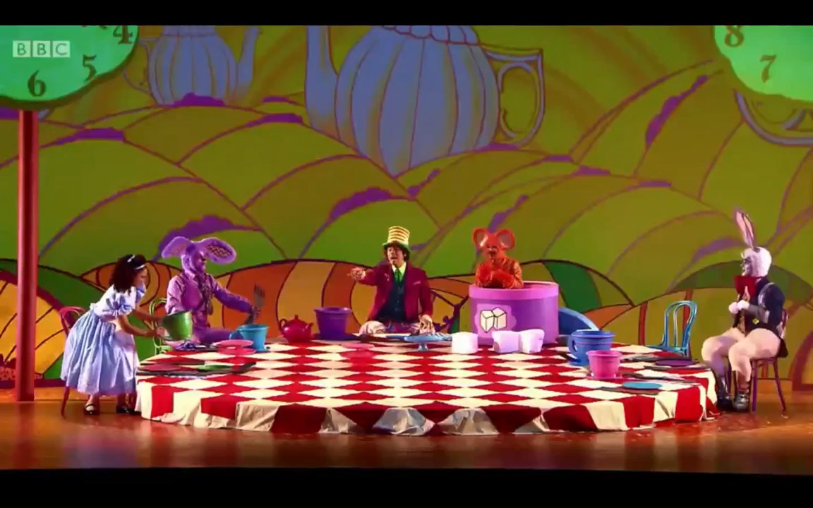 This is a performance in front of a crowd of children. It seems to be based on imagination. The woman playing the part of Alice says she has no imagination at all. There's also musical numbers.