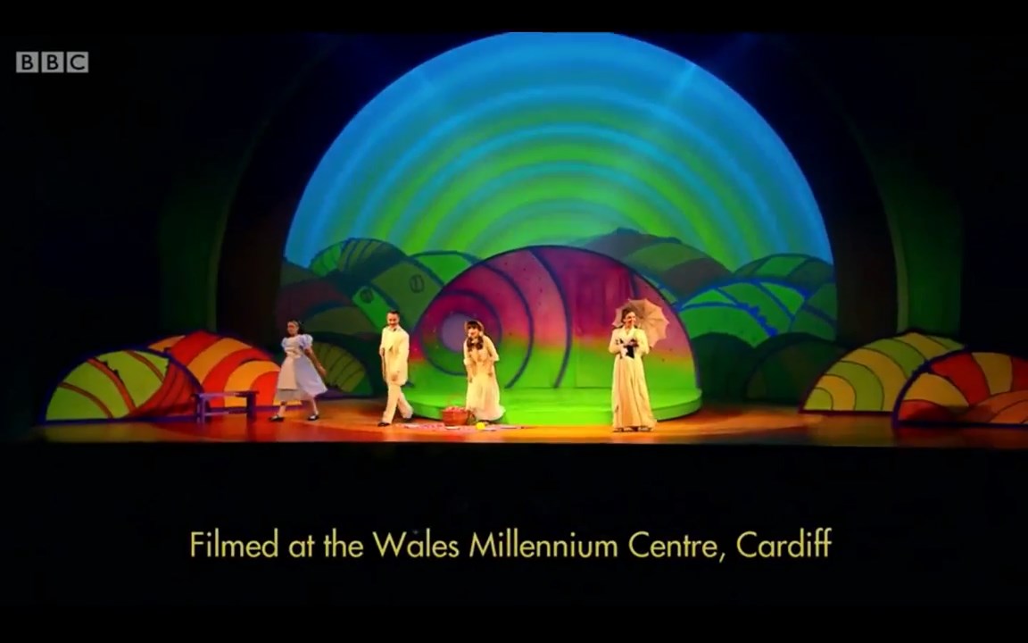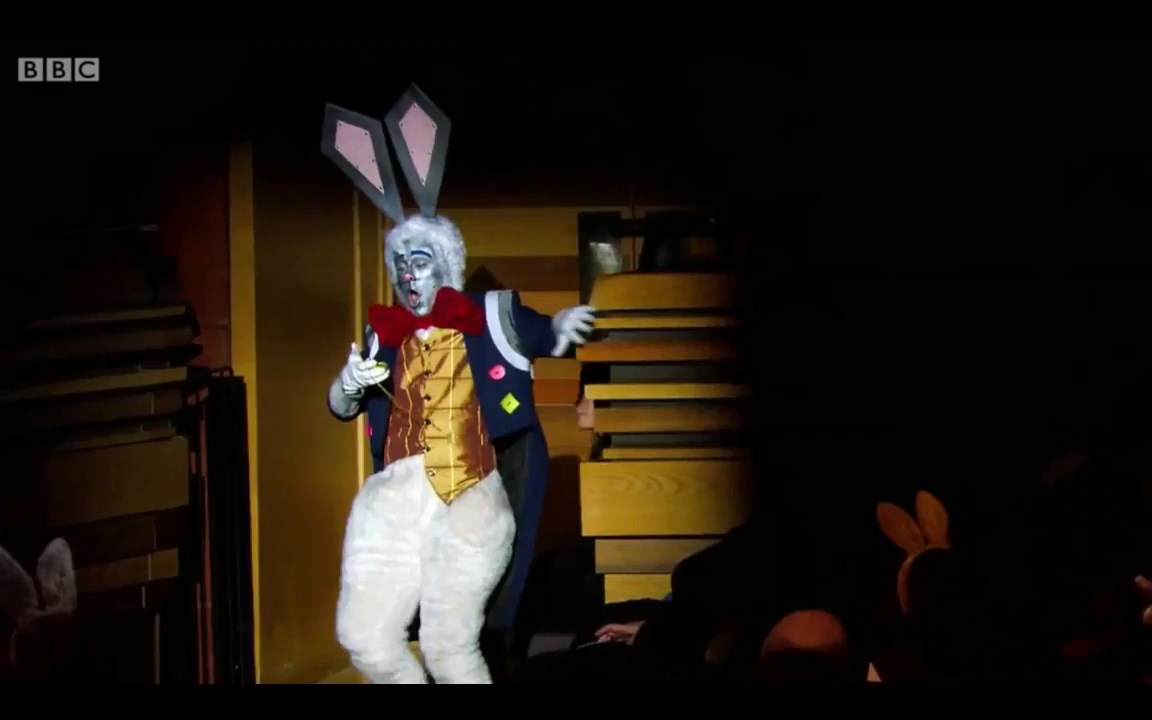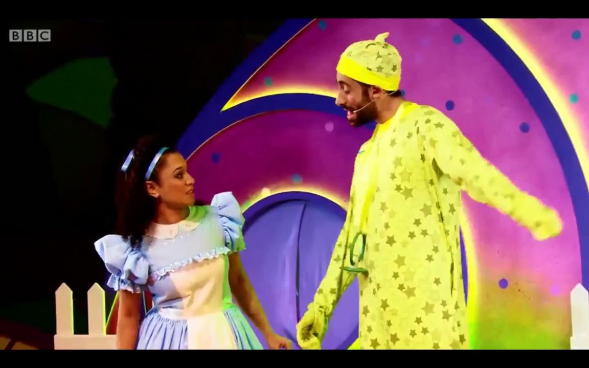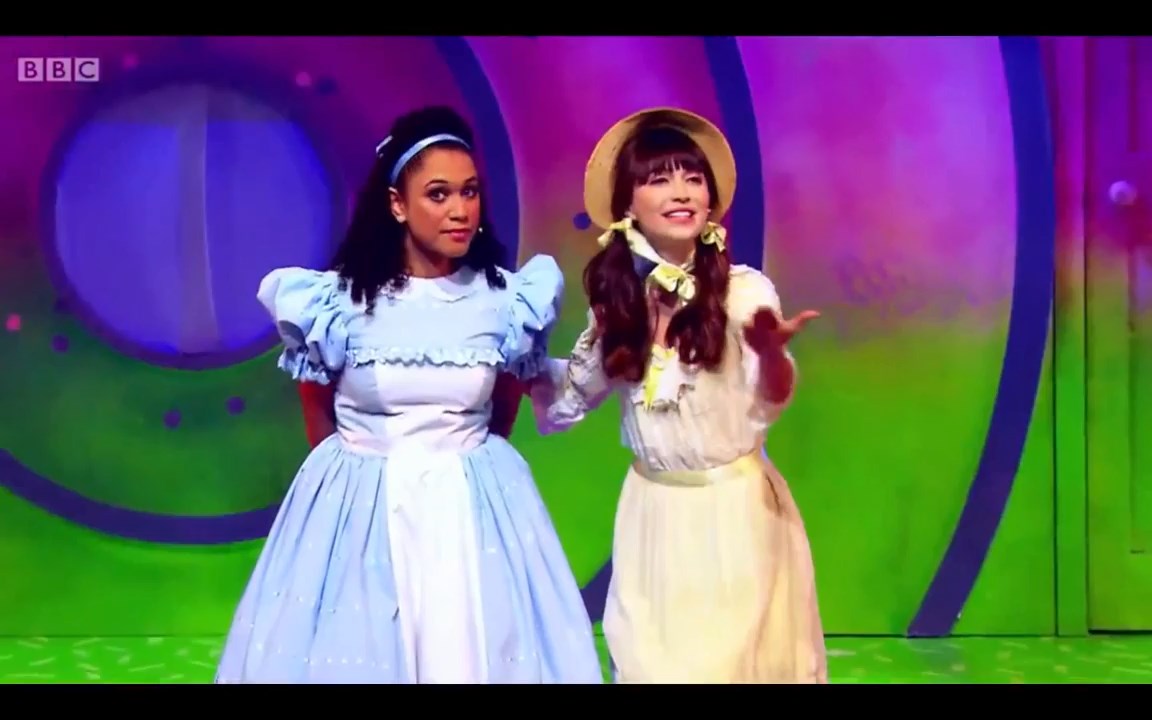 This is a performance in front of a crowd of children. It seems to be based on imagination. The woman playing the part of Alice says she has no imagination at all. There's also musical numbers.