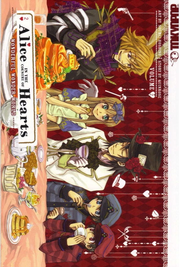 Volume 2 starts off with Alice attending a tea party. She plays with Elliott's rabbit ears. She also likes books, and Blood supposedly has lots of them. The White Rabbit/Peter White says he brought Alice to Wonderland so she could be happy.