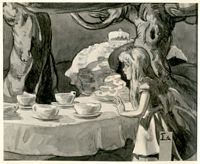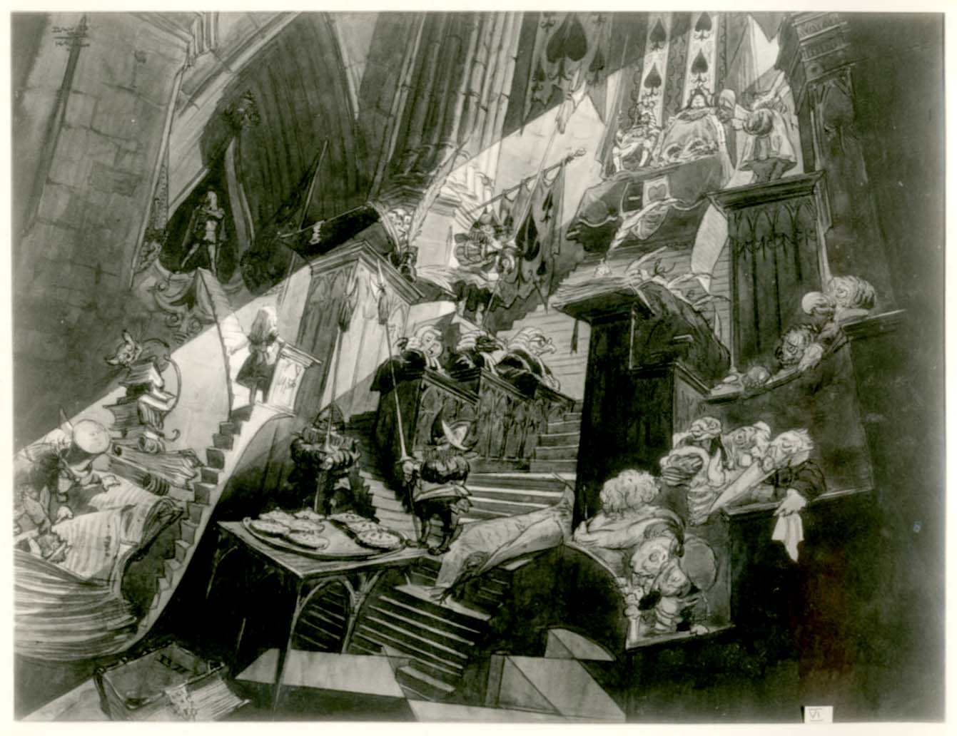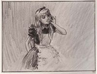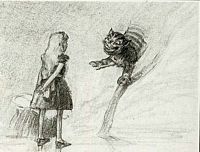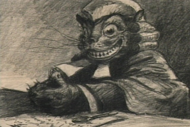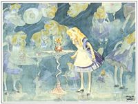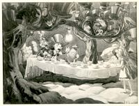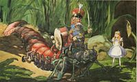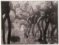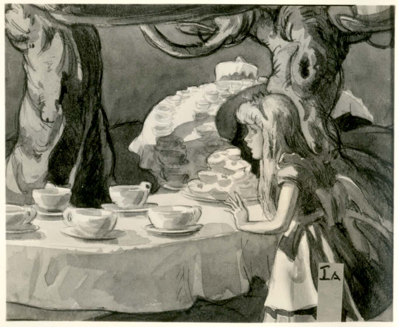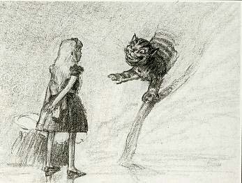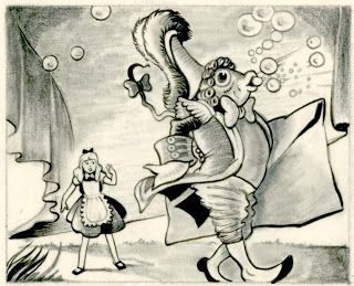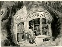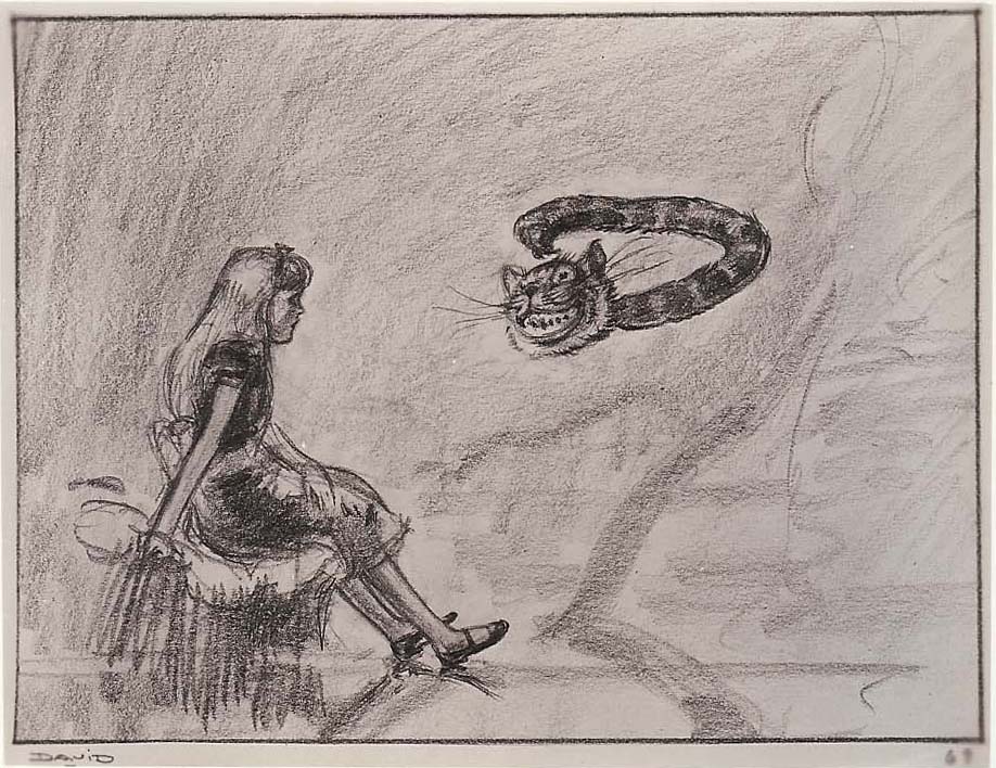 Artwork by David Hall had been made and these are some of the pieces of the artwork intended for an earlier Alice in Wonderland movie.