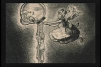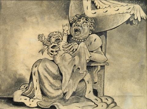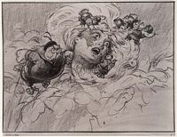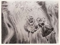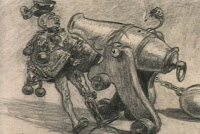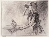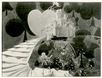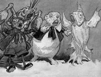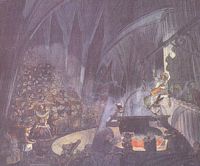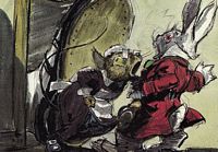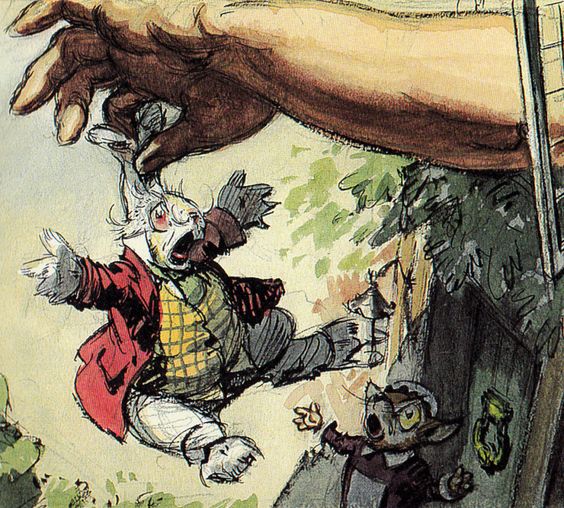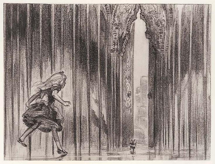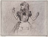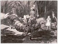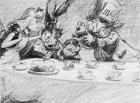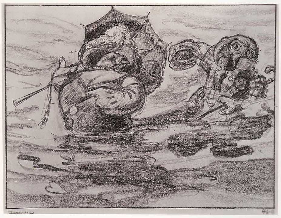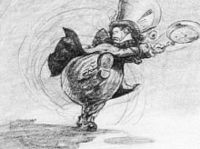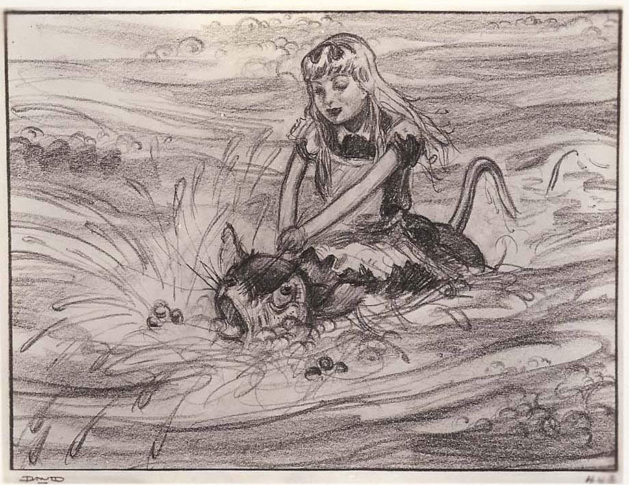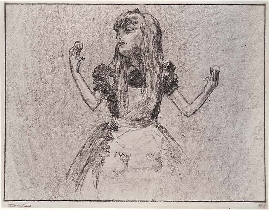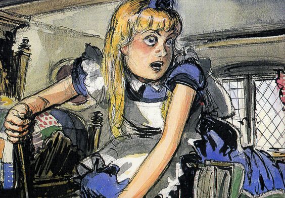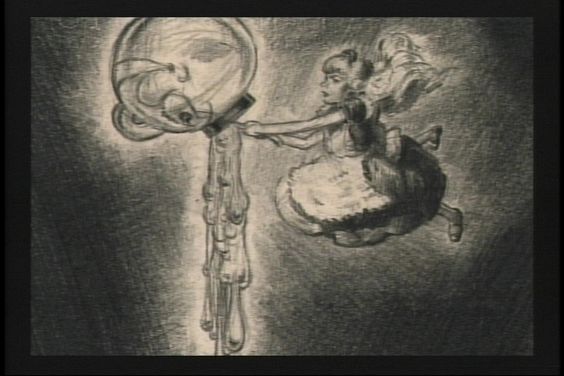 Artwork by David Hall had been made and these are some of the pieces of the artwork intended for an earlier Alice in Wonderland movie.