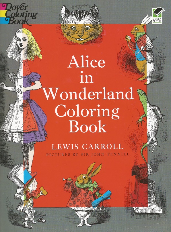 From Dover Publications using Tenniel's artwork. The story text is on the left side of each page and there is a full-page drawing on the right. Since it's Tenniel's artwork it would be sort of difficult to color in.