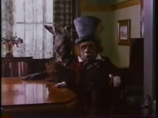 The dormouse. The Mad Hatter in this case is ultra-nasty and violent. The scene shifts back between the hallucination scene and the scene in the boat where Dodgson is telling his story.