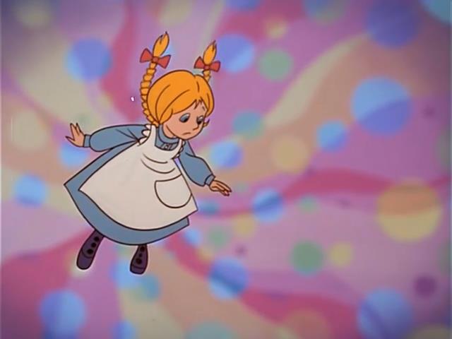 In the fall down the rabbit hole there are no paintings, cupboards or anything else for Alice to look at. A lot of the section with the doors is changed considerably. Most of the part of Alice in the rabbit's house is also left out.