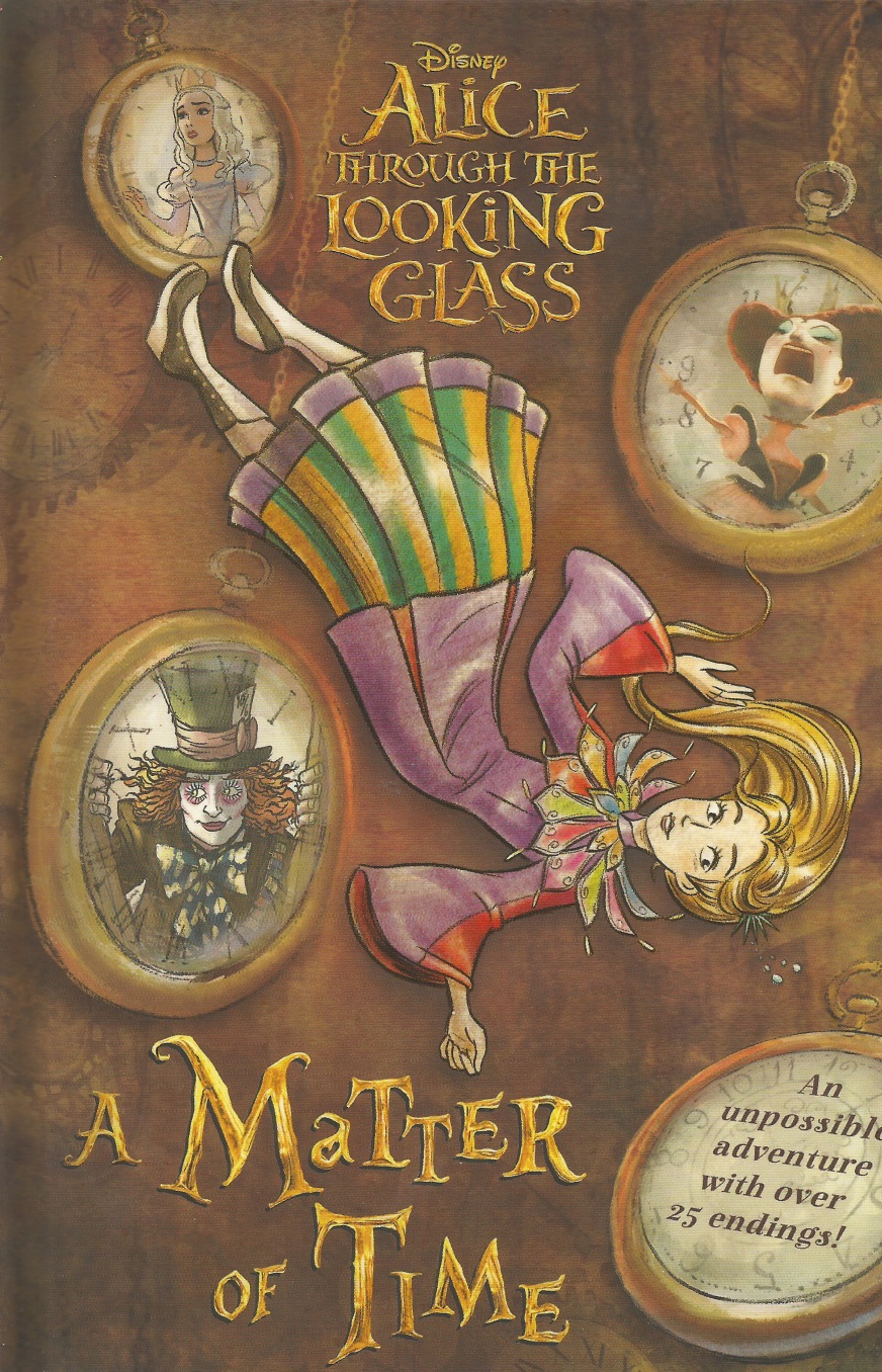 This is a hardback Disney book based on the Through the Looking Glass movie. It's in the style of a Choose-Your-Own Adventure genre. There are four characters you can play; Alice, the Hatter, the Red Queen or the White Queen.