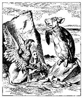 35. Mock Turtle and Gryphon demonstrating the Lobster Quadrille to Alice