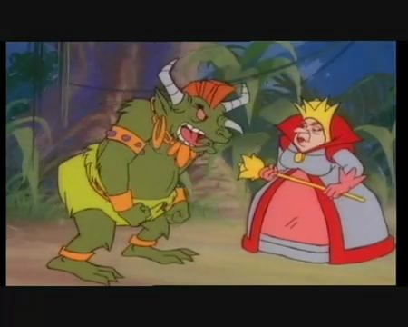 The Jabberwock. The Red Queen tells him she wants Alice stopped.