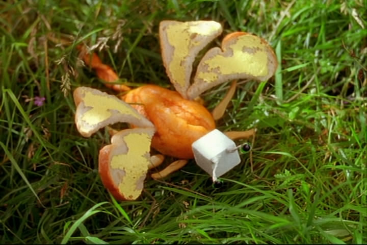 A bread-and-butterfly. Again, the movie is making a very logical move as the wasp is having Alice name insects she knows, and he then points out corresponding insects that live there.