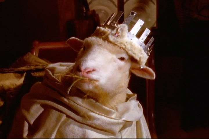 A poem the White Knight relates is told in the form of a black-and-white film.