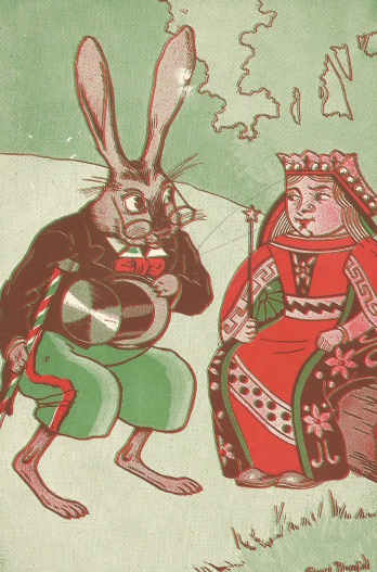 The book is a lot of fun. Uncle Wiggily is a 'gentleman rabbit' who walks with a crutch, loves adventures and helps everyone he can. In this book there is a series of adventures, each chapter involving him meeting a character from Alice in Wonderland. Alice also shows up quite often. He has two 'enemies,' mosquitoes and an alligator that is always trying to catch him and never succeeds.
