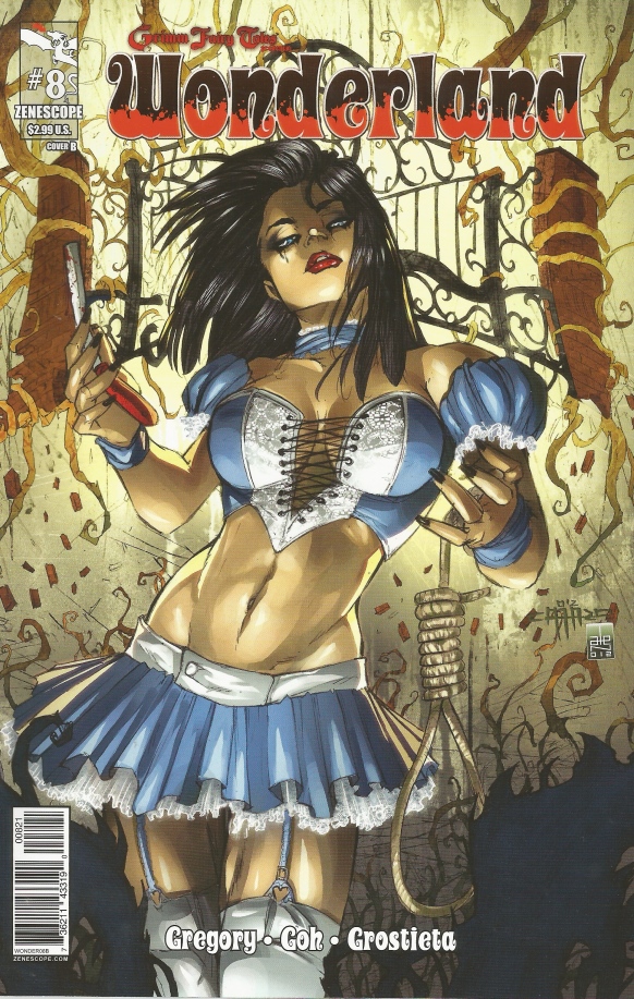 Issue 13: A long time ago Wonderland seems to be divided up among the Queens, with the divider being the Jabberwocky. Lory comes through the mirror and tells off the Jabberwocky. Meanwhile a bus driver is nearly murdered and brought to Wonderland. By this point in the game almost nothing in the series makes any sense at all. Big boobs, lots of gore and very, very little (if any) sense.