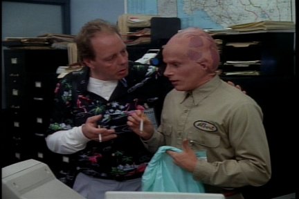 The slimeball reporter gives Albert a cigarette and Albert has a strong adverse reaction to it.