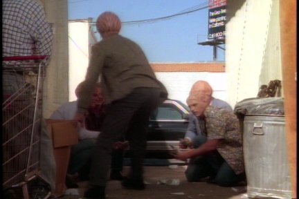 A Newcomer is gambling, and losing, when a car pulls up and he gets scared and starts to run away.