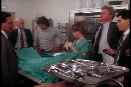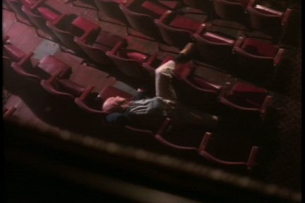 George confronts the killer in a movie theater.