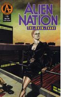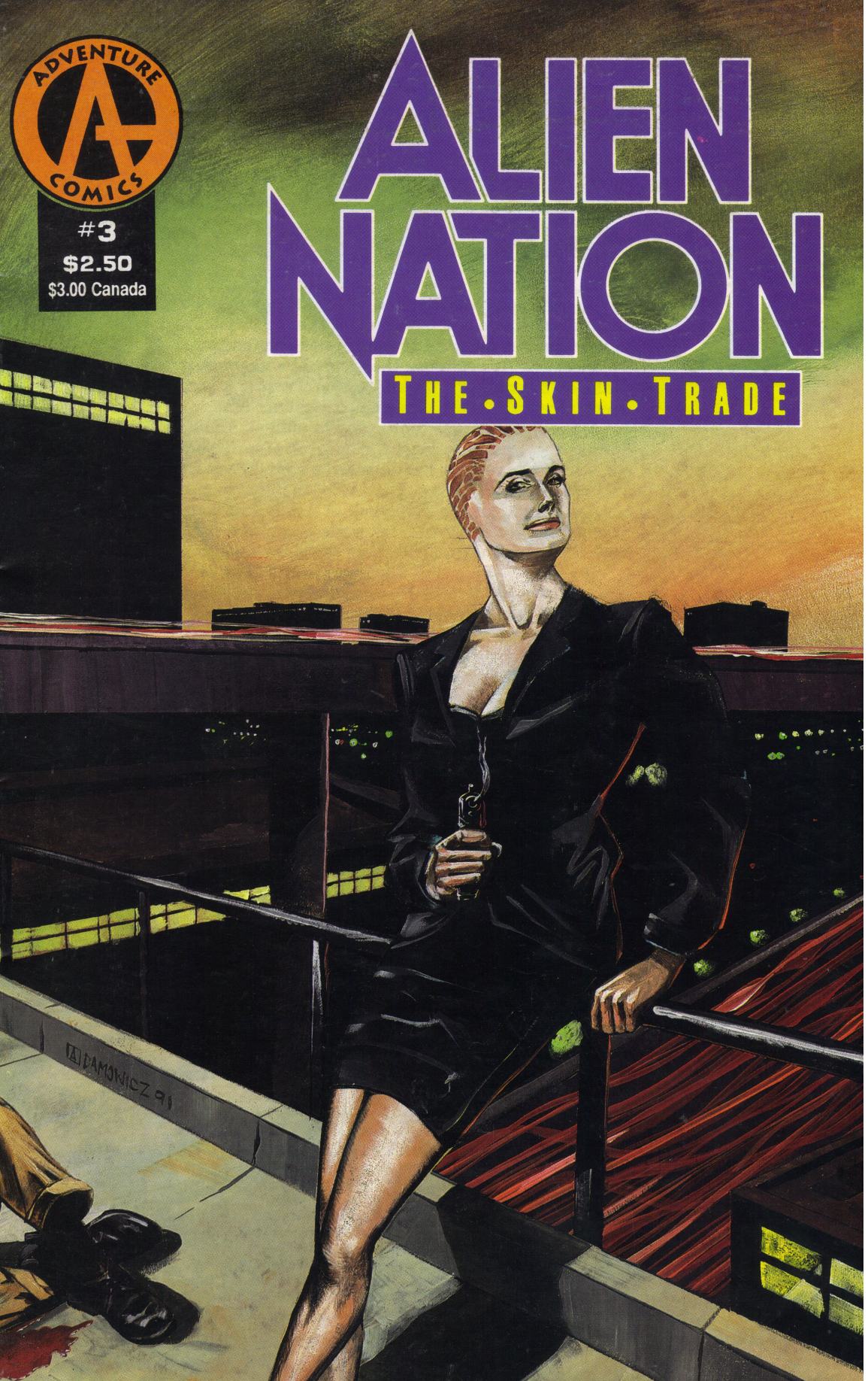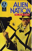 Her husband tended to get drunk on milk. Later we see some Newcomer rich thug have her husband's body disposed of. There is a neat two-page spread on the main characters of the story, with drawings. The detective saves a Newcomer bum from being beat up and finds out someone is running an operation where Newcomers can get something like skin grafts to make them look like humans so they can get better jobs. The gang boss' name is Dexter Methorophan.