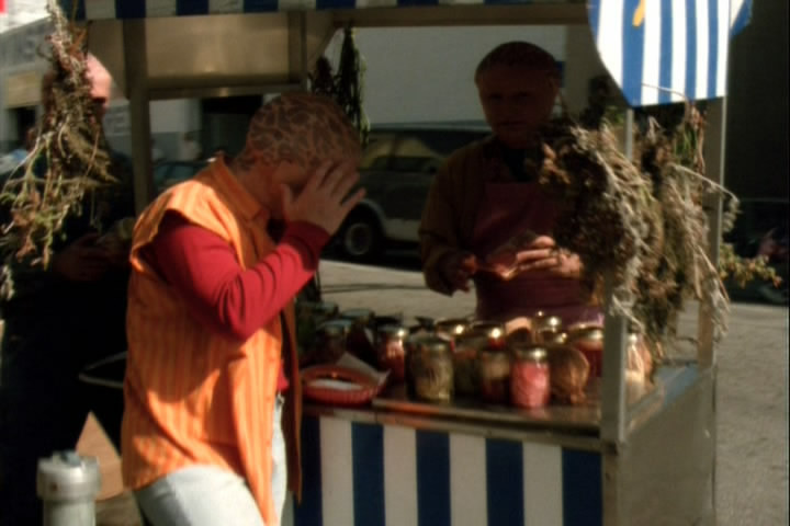 Emily gets beaten up for trying to help a female Eeno. Emily even gets splashed with salt water. She's not in great shape.