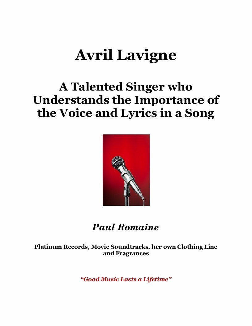 Avril Lavigne, A Talented singer Who Understands the Importance of Voice and Lyrics in a Song