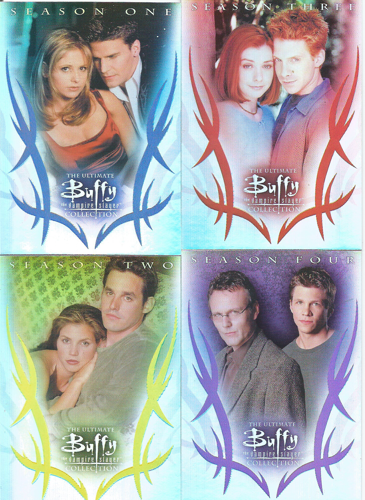 This is a set of 72 cards which are printed on 'premium chronium card stock.' The back of the cards has info on things going on for that character(s) at various points in the series. To me these cards are a little strange. Chromium stock is interesting but the photos seem to be physically darker than usual cards. The set was made in 'limited' supplies according to the ebay info.