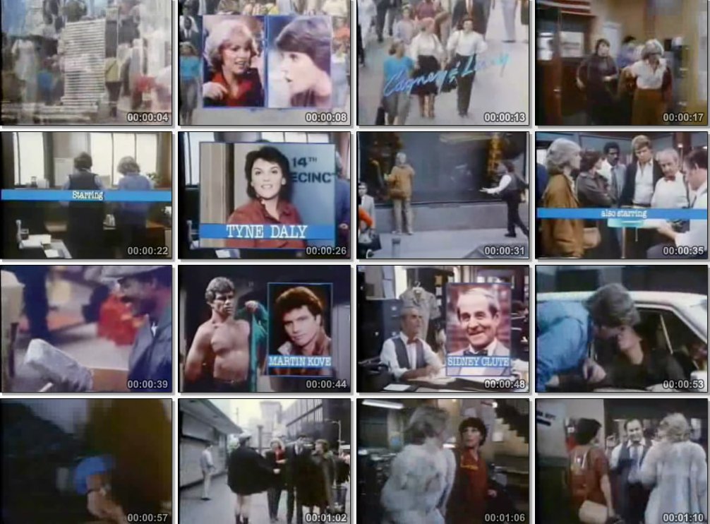 ”This is a opening from a season 2 ep. of Cagney and Lacey. NOTE: It's the first season featuring Sharon Gless and Chris Cagney and the screen set-up for both Sharon Gless and Tyne Daly is on the same screen.” From: megamanj2004