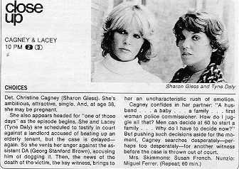 Tearful farewells are common among actors on location, but the weeping often stops the moment the dressing-room trailer door slams shut. This parting is different. As detectives Christine Cagney and Mary Beth Lacey-the excitable blonde and her plainspoken, motherly partner-Gless and Daly established an on screen rapport that reflected an off screen friendship. It endured through the six-year run of the series (1982-1988) and continues today.