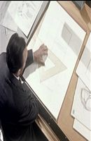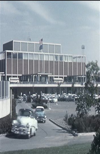 The film then goes into a section where it talks about business, business buildings being modern and pleasant to work in, and how this relates to the design of new products and advertisements for them.