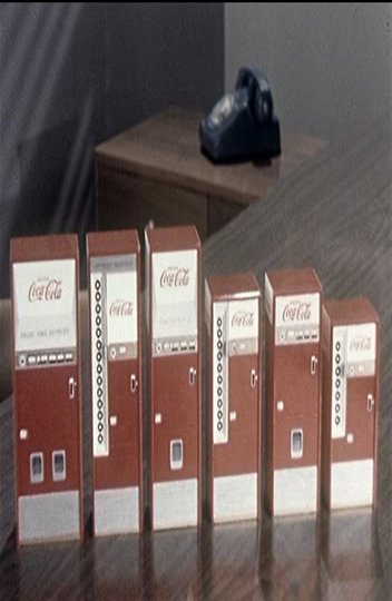 The V-63 is discussed by a (probably fake) salesman who is asked how he would get business prospects to commit to buying the cooler. Then a different (fake) salesman talks to a (fake) gas station owner about how a different model would help bring customers in. Profit is also discussed for the machines.