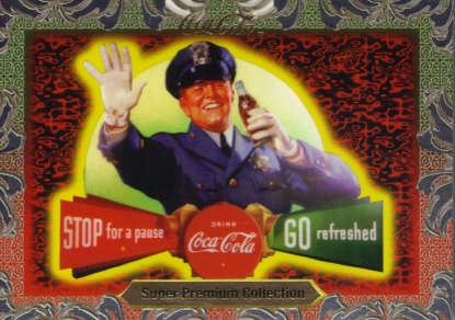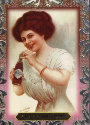 Right-hand side. The top card is from 1936. The next card has artwork from 1932, and discusses the first unofficial bottling of the drink. The bottom card is from 1946. The cards generally are taken from metal plates, cardboard cutouts and other advertising works, and the card will list what such things are worth to collectors today.