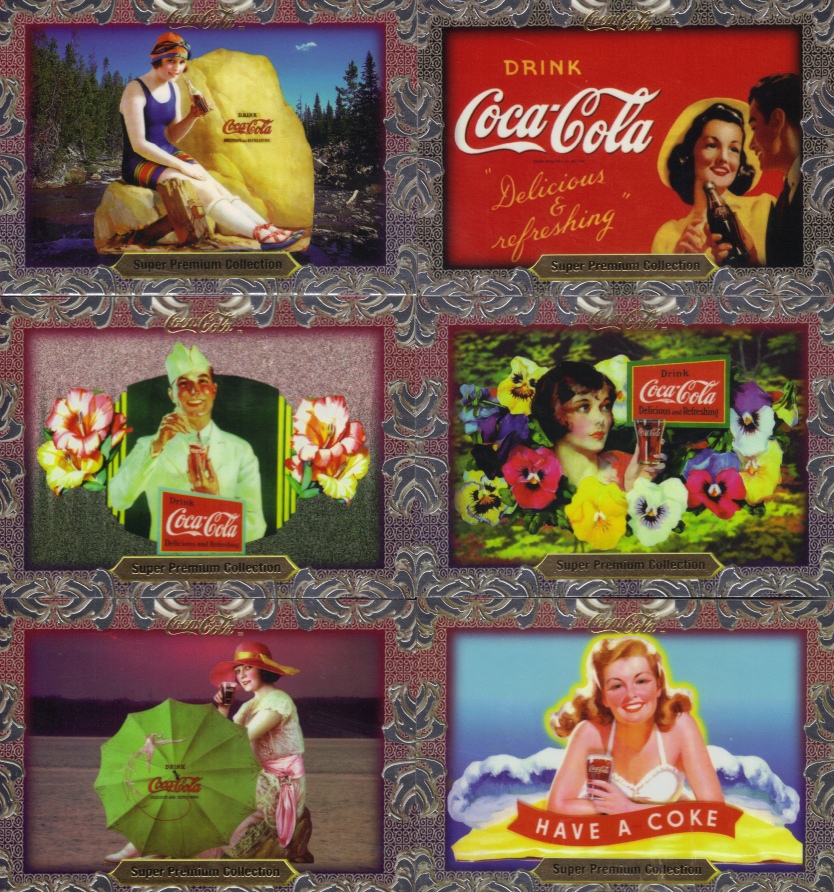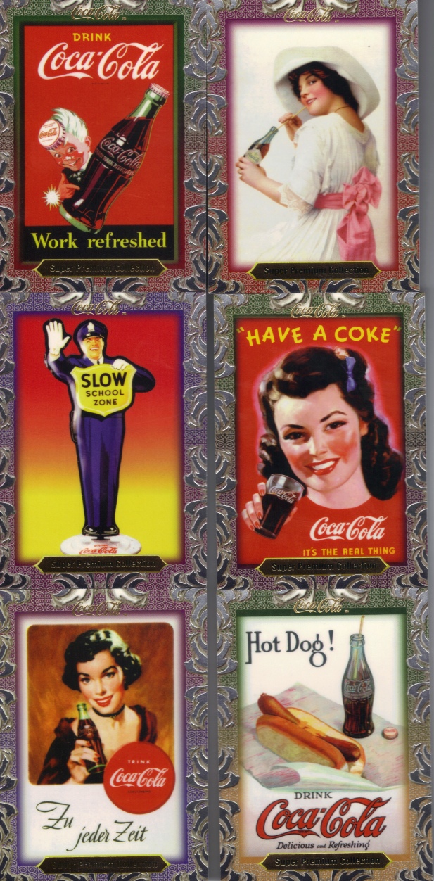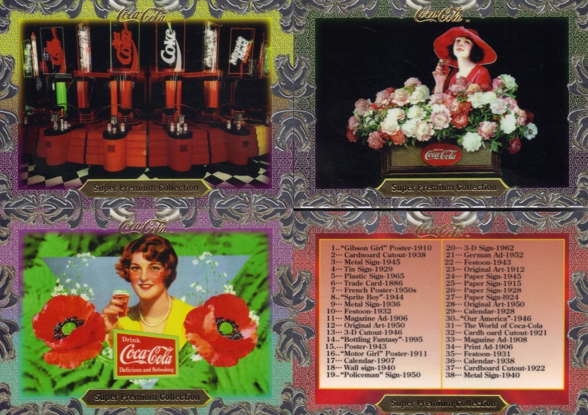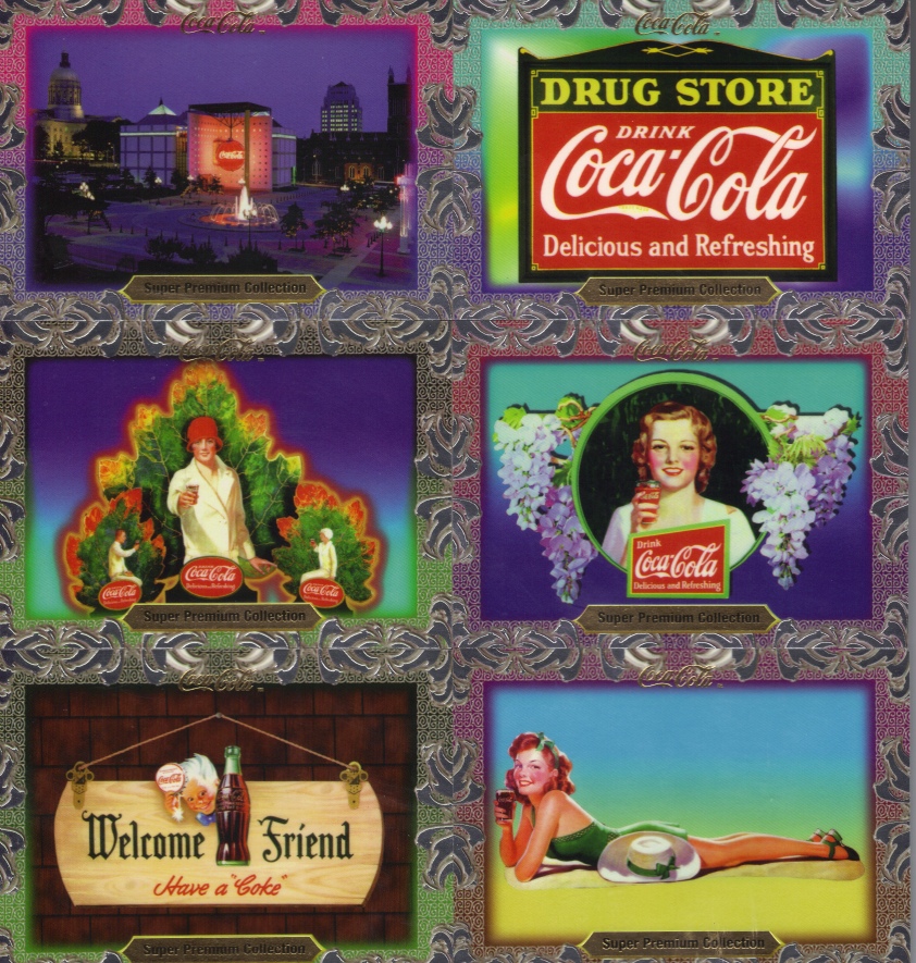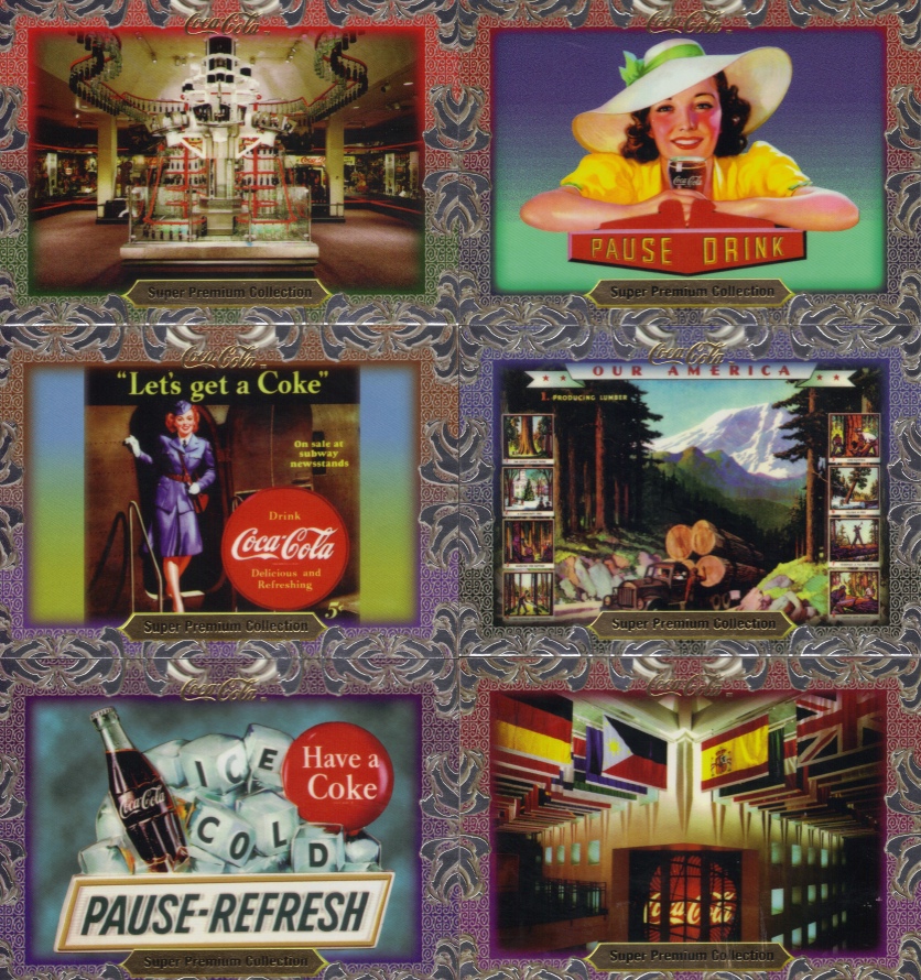 Right side. The artwork is from 1943 in the top card. The second one is from 1946. The bottom card is another from 1995 and shows 'The World of Coca-Cola' in Atlanta, Georgia.
